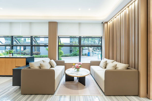 客服中心内简约通透的空间,温润的木质调与浅灰基底交织出宁静氛围,每一处细节皆彰显人文关怀,让日常咨询、需求响应更高效,让住户休憩、社群活动更温暖。