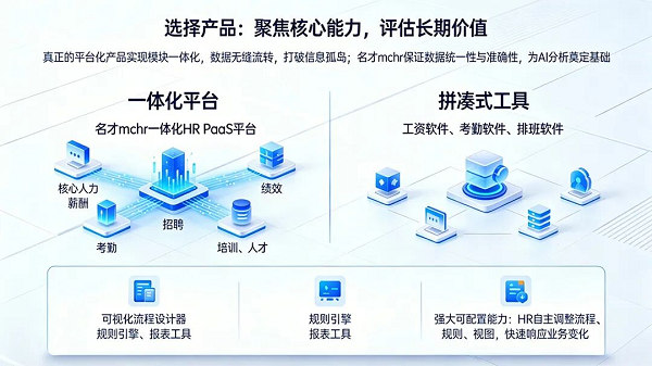 名才mchr的一体化HR PaaS平台正是此类典范,其从根本上保证了数据的统一性与准确性,为AI分析和决策支持奠定基础。