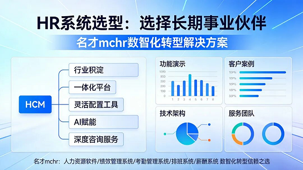 名才mchr凭借其深厚的行业积淀、一体化的HR PaaS平台产品、灵活配置的前端可视化工具、强大的AI赋能、项目制的落地咨询服务等优势,已成为众多企业数智(AI)化转型的信赖之选。
