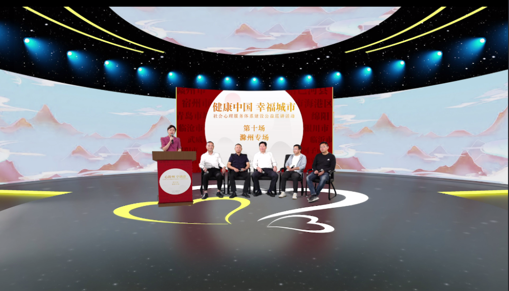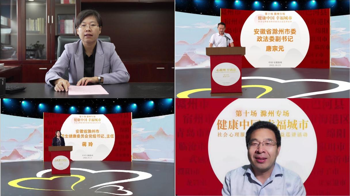 滁州专场由中共滁州市委政法委员会、滁州市卫生健康委员会主办,中共滁州市委组织部、滁州市教育体育局、滁州市公安局、滁州市民政局、滁州市残疾人联合会协办。活动以“‘心’滁州‘亭’满意”为主题,以“社会心理服务的实际应用”为主线,采取AR录播形式,通过PPT 讲演、短视频、访谈和圆桌对话等形式。