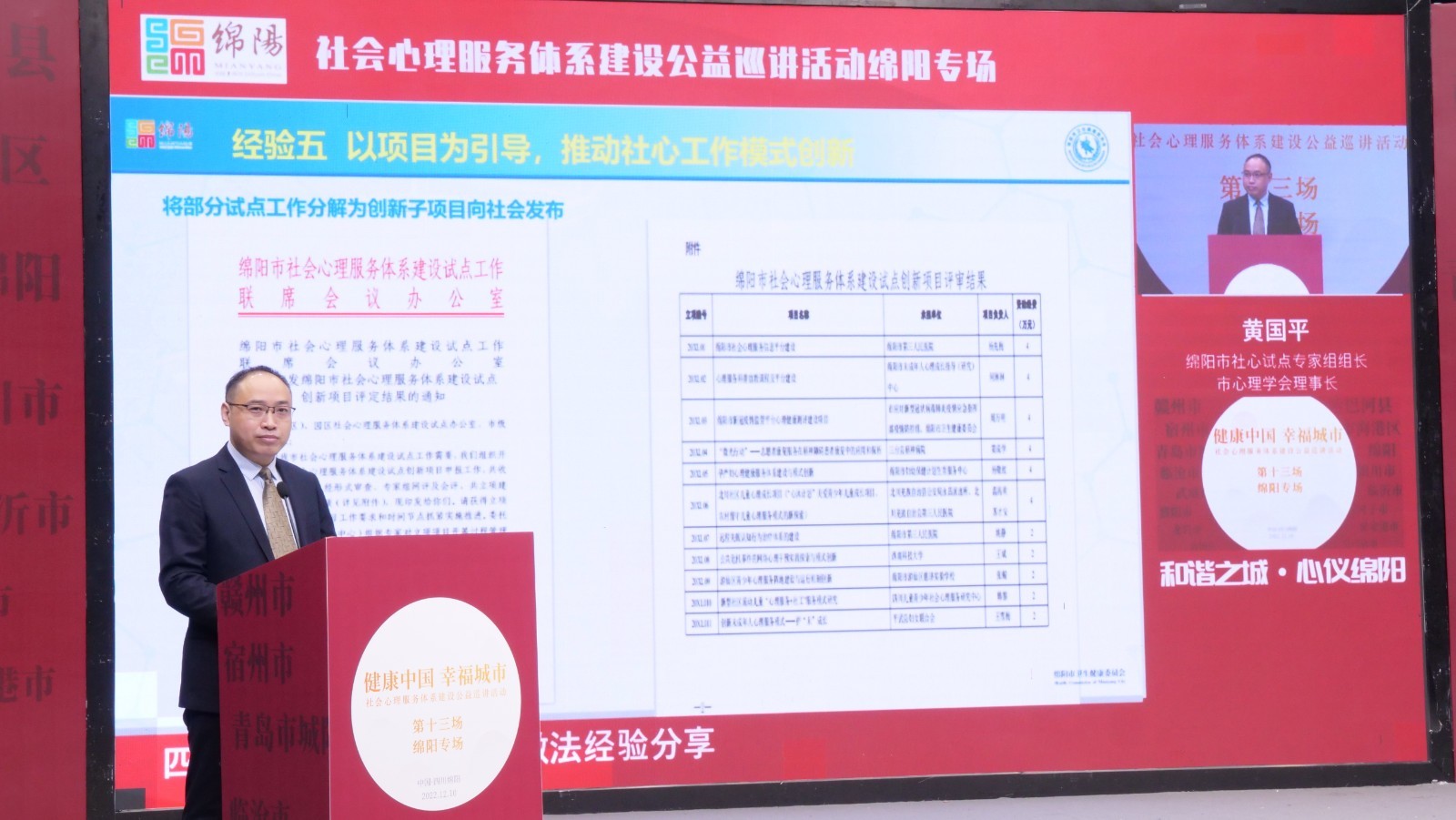 12月10日,“健康中国·幸福城市”全国社会心理服务体系建设公益巡讲活动第十三站在绵阳成功举办。